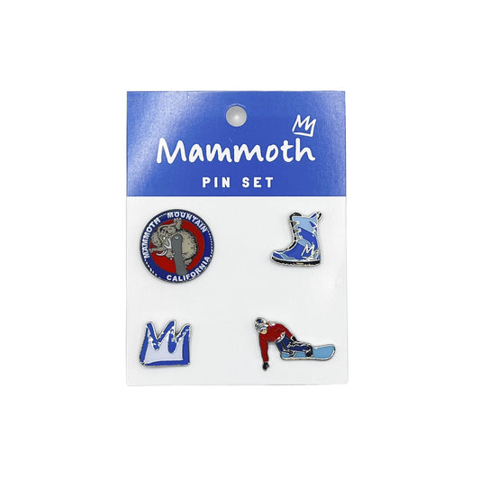 Includes Snowboard Woolly Logo, Mammoth Crown, Snowboard Boot, and Rider Pins.