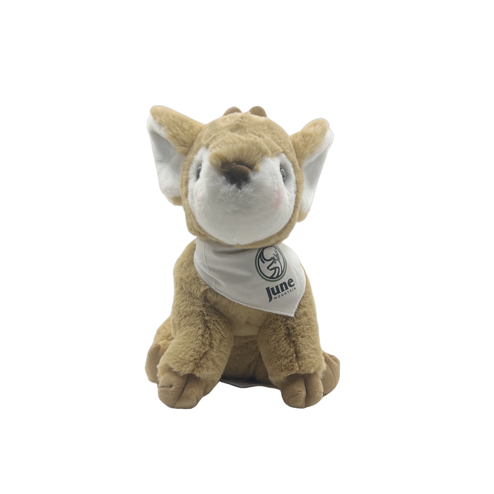 June Mountain's 9 Inch Soft Fawn Plushie. Made with 100% Recycled Stuffing. Machine Washable.