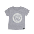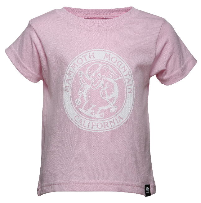 Infant sized Skiing Woolly Short Sleeve T-Shirt with Mammoth Mountain skiing Woolly logo print on the front. 100% cotton.