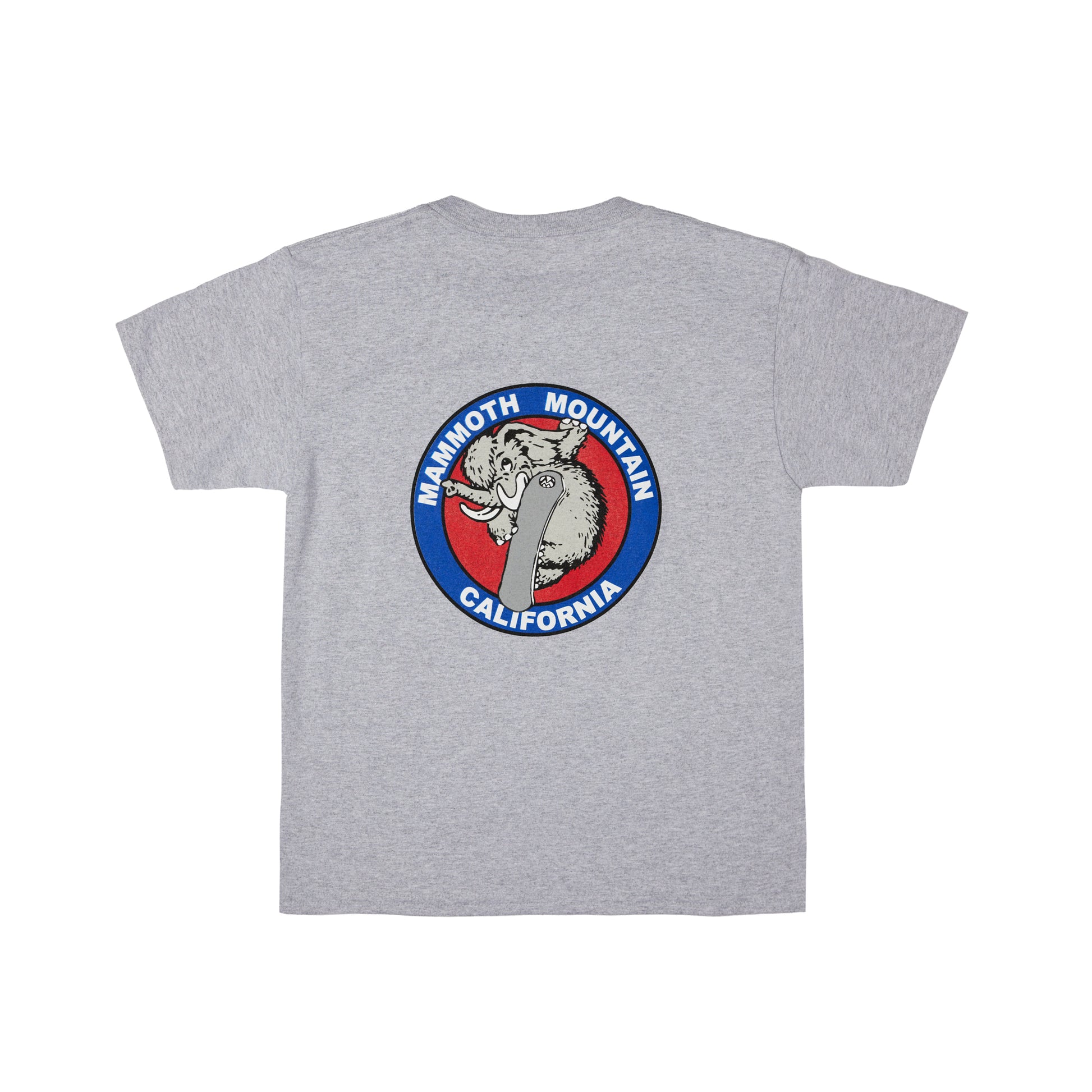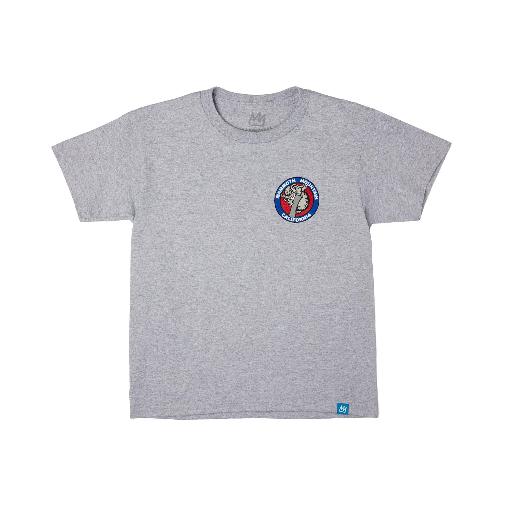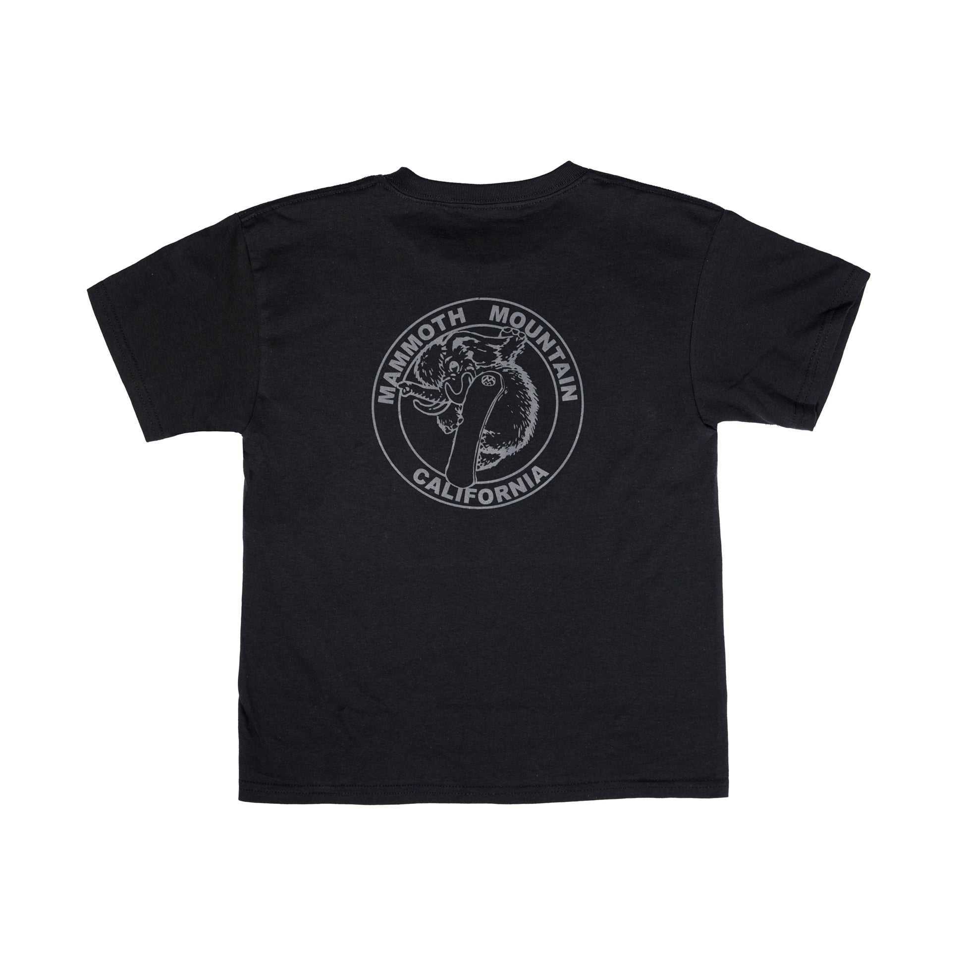 Youth sized Snowboard Woolly Short Sleeve T-Shirt with Mammoth Mountain logo on the front and back. 100% cotton.